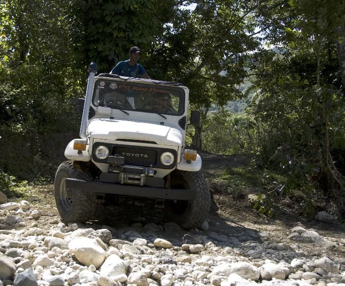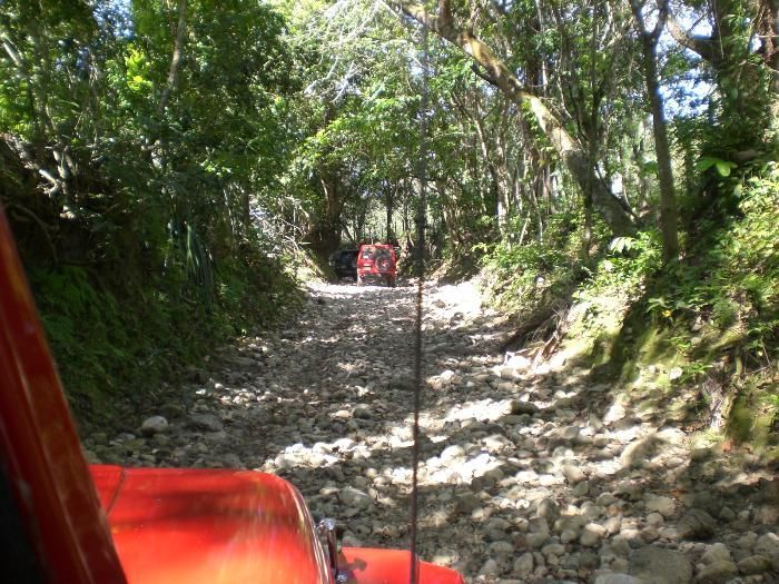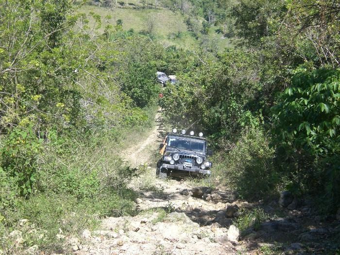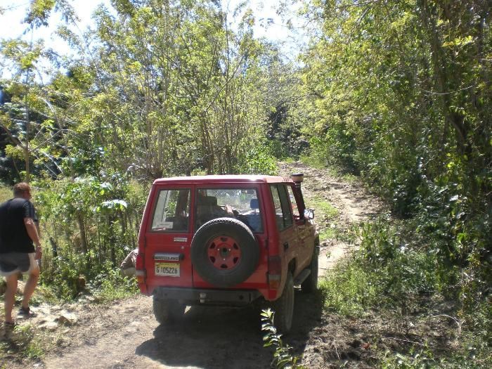 Route: Sosua – Camu – Juan de Nina – Cupey. After Cupey a left turn , this dirt road turns into a trail that can’t be used by normal unprepared 4x4s and leads into the mountains, Cordilleara Septentrional. In Loma de Gallo take a right turn, this trail leads to Imbert. If wet, this trail is very difficult.