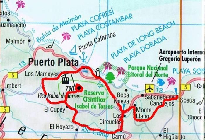 Pedro Garcia Tour. Sosua-Cupey-Rio Grande-Pedro Garcia-Back on Carretera Turistica. Long tour, 130 km.