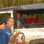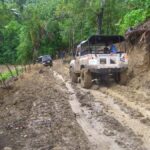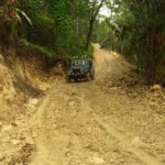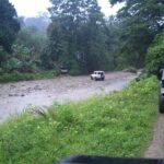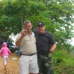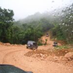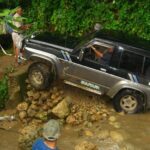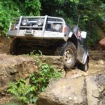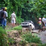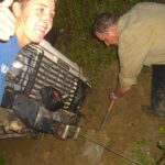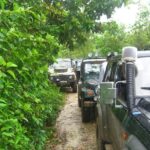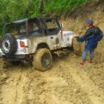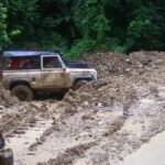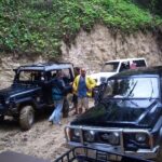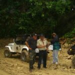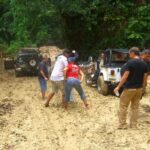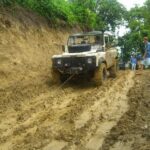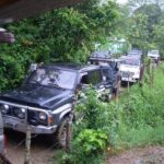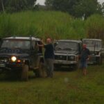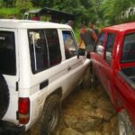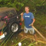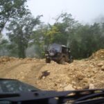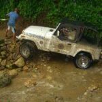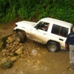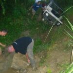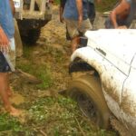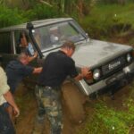 Soory, only German available 27/ August 2006-08-28 Pirates-Schlabber-Schlamm-Tour Autor: Klaus Heinemann Sonntag morgen,9.00 Uhr,Chiqui und Klaus öffnen die Pforten des Clubhouses.Im Hintergrund läuft der Fernseher,Formel 1 Rennen.Draussen leichter Nieselregen,der Himmel wolkenbehangen.Oh,je! Wie angekündigt soll die neue Tour,ausgearbeitet und 2 Tage vorherabgefahren von Hubert und Herman,heute in Angriff genommen werden. Wetterlage? Nicht gerade berauschend.Nach und nach treffen die Mitglieder des Clubs +Gastfahrer ein. Renato mit Frau/ Peter / Jens mit Frau / Herman mit Frau / Hubert mit 3 Mädels und 1 jungen Beifahrer / Schraubi solo / Gerd / Marco (ohne Auto) / Stefano mit Sohn / Konrad/Rudolfo/ Klaus und Chiqui (heute ohne Hund ).8 Jeeps + 1 Geländebus Fahren oder nicht fahren? Gute Frage. Um 11.00 Uhr steht fest,wir fahren die Tour. Auf geht’s ! Von Sosua Richtung Puerto Plata,Abzweigung Carretera Turistica. Zügig voran geht die Fahrt bis Jamao del Norte.Gerd hatte schon bei Antritt der Tour ein Problem mit dem Keilriemen und stellte dann traurig fest,das sich seine Lichtmaschine fesrgefressen hatte. Das Aus für ihn. Nachdem sein Auto versorgt ist hat er sofort eine Mitfahrgelegenheit bei Schraubi als Beifahrer. Im Zentrum des Ortes biegen wir rechts ab. Über Stock und Stein, Calichestrasse,ein wenig schlammig aber relativ griffig, passieren wir einen kleinen Pueblo mit dem Namen Jassica alta la Batata. Kurzer Stop an einem Colmado,schnell ein Bier trinken,ein wenig plaudern,Fotos schiessen und auch die herrliche Landschaft geniessen.Der Himmel geschlossen ,mit dicken Wolken behangen.Es fängt wieder an zu regnen.Weiter geht die Fahrt und was vorher noch Strasse war,verwandelt sich mehr und mehr in eine Schlammpiste.Sauwetter!!!Hubert ,heute mit seinen neuen Super-Mudd Stollenreifen hurtig voran.War die Bergauffahrt durch die prachtvolle Gebirgskette noch recht einfach sollten wir bald fesatstellen was unsere Auto können oder auch nicht.Mir,und sicher vielen anderen auch,ist bei den Abfahrtspassagen nicht immer ganz wohl in der Haut. Schlamm,Schlamm,Schlamm,keine Randbefestigungen und immer den Abgrund vor Augen.Die Autos wühlen sich schwer durch diese Dreckmasse.Wir erreichen Jessiquita..Dann ein Stop.Was ist los ? Alle schauen auf eine Abfahrt,ca. 200 m steil abwärts,keine Seitenaufschüttungen links,und durch die starken Regenfälle 20 cm Lehmschlamm. Wer wird als Erster fahren? Dann die Nachricht*3 Autos sind schon unten. Herman mit eingelegtem Rückwärtsgang—Jens,mehr geruscht als gefahren,aber angekommen—und Peter,der es sich nicht verkneifen konnte eine 180 Grad Drehung hinzulegen um den Rest dann rückwärts zu fahren.Also,es geht doch! Ich fasse mir ein Herz und lasse meine Liebste aussteigen.Allrad/Geländeuntersetzung./1.Gang!!! Ich merke schon nach wenigen Metern dass der Untergrund nicht hält und mein Heck versucht, mich zu überholen..Hubert ruft mir zu ‘= Halt !!! Ich halte an und mache auch keinen weiteren Versuch mehr.Huberts Beifahrer kommt mit dem Seil und klingt mich ein. Die Seilwinde arbeitet und nach ein paar Sekunden ist mein Auto wieder in Fahrtrichtung .Neuer Versuch ! Ich sehe Jens unten mit der Fotokamera stehen.Langsam,nur mit der Bremswirkung des Motors und ganz leichtes antippen der Bremse schliddere ich ins Tal. Geschafft!!!! Erleichtert schaue ich nach oben. Peter grinst mich an und drückt mir eine Dose Bier in die Hand. Oben noch keine Bewegung. Dann,ganz langsam und vorsichtig ein Auto am Hang. Wir erkennen Renato gehalten von der Seilwinde Huberts.Unten angekommen wird Renato ausgeklinkt. Hubert wendet sein Auto,überprüft seine Sperren und dann? Wauuu,Gas, zweiter gang und Vollgas.Das Auto schiesst die Strecke bergauf .Jubelrufe !!! Nun fehlen nur noch 3 Autos. Einer nach dem anderen kommen an der Winch von Hubert wohlbehalten unten an. Jubel und Erleichterung .Es regnet wieder.Nach kurzer Fahrt Stop an einem Colmado.Beratung ! Ursprügliches Ziel war Camp David hoch über Santiago. Hubert rät ab die geplante Strecke zu fahren aber es gibt eine Ausweichstrecke mit einer kleinen Schwierigkeit. Gesagt,getan-wir fahren weiter bis Gurabito de Yaroa,ein Mini-Pueblo. Die Strasse durch eine weggespülte Brücke unterbrochen. Mit blosser Durchfahrt nicht zu machen. Also,rückwärts rein in den Bach und vorwärts zur anderen Seite wieder heraus. Der Kick an der Sache ist,zur anderen Seite wieder hinaus,weil einmal sehr steil und zweitens sehr eng. Hubert fährt als erster,ohne Probleme.Bis auf Herman,der seinen Part bravorös meistert,müssen alle das letzte Stück gezogen werden..Die Weiterfahrt ohne Probleme.Trotz Regen gute Strassenverhältnisse.Und wieder Stop!!! Die Strecke steilansteigend und sehr matschig. Konrad hinter Hubert.Rechts zwei parkende Auto von Einheimischen.Links und Fahrbahnmitte tiefe,ausgewaschene Gräben.Konrad versucht so weit wie möglich links zu fahren,rutscht jedoch weg und beschädigt nach weiteren Befeiungsversuchen eines der geparkten Autos.Was nun? Erstmal viel Geschrei und Diskussionen.Letztendliche Entscheidung*Wir bezahlen den Schaden.Kann jedem passieren.Wir kehren um,nachdem Konrad sein Auto wieder fit hat. Nehmen eine andere Strecke und erreichen die Carretera in der Nähe von Santiago. Es ist 5 Uhr nachmittags.Kurze Besprechung** Camp David? Zu spät !!! Wir entscheiden uns zurückzufahren nach Sosua. Treffpunkt Clubhouse.Freuen uns bereits auf einen kühlen Drink und was Herzhaftes zwischen den Zähnen.Doch die Tour ist noch nicht zu Ende. Schraubi ist mit Gerd auf dem Weg Gerds Auto zu bergen. Wir auf dem Weg nach Sosua. In El Mango hält Jens an und teilt uns mit,er wisse eine schöne Geländestrecke,eine Abkürzung. Bueno! Fahren wir ! Konrad mit Beifahrer Marco klinken sich aus und fahren die Carretera. Nach der Einfahrt wieder Lehm und Matsch.Nach einiger Fahrzeit erneuter Halt. Wir befinden uns in Zuckerrohrfeldern und dort wo einmal eine Strasse war,ein grosses Schlammloch. Da werde