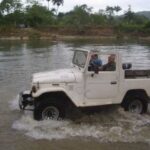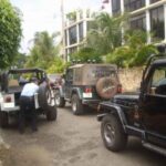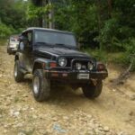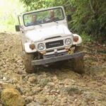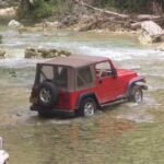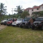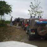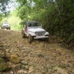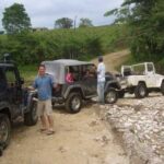 Am Sonntag morgen ging es gegen 10:30 Uhr vom Caribe Campo ab, bis auf unsere # 2 Thomas Klusmann konnten alle Gruendungsmitglieder plus Mitglied Gerhard mitfahren. Da es in der Nacht geregnet hatte, waren einige Piraten eher vorsichtig gestimmt bezueglich der zu fahrenden Route, aber Renato, Jens and Martin konnten sich mit Ihrem Vorschlag, ueber Madre Vieja an den Wasserfall und weiter nach Gaspar Hernandez zu fahren, durchsetzen; “wer nichts wagt, der nicht gewinnt”. Bei der 1. Flussueberquerung des Rio Yasica kam die neue Winch von Renato zum ersten Mal zum Einsatz, musste er doch einen Dominikaner mit dessen PickUp aus dem Fluss ziehen. Bei Jamao kam es dann zur zweiten Flussdurchquerung, sehr zum Vergnuegen von hunderten Dominikaneren, die ihr Bier am und im Wasser genossen. Nach kurzer Fahrt auf der Teerstrasse Richtung Moca bogen wir dann links ab Richtung Wasserfall. Auf dem Weg zum Wasserfall gab es einige mittelschwere Abstiege, die aber auch von den nicht hoeher gelegten Wage ganz gut bewaeltigt wurden. Fuer Marco war es die erste Fahrt im eigenen Wagen, hatte er den Wrangler doch erst zwei Tage vorher gekauft. Nach mehren Flussdurchfahren erreichten wir dann den Wasserfall, aufgrund der fehlenden Sonne wollte dann aber keiner den Sprung ins kuehleWasser wagen. Einer Arztfamilie aus Santiago, die es mit einem Nissan PickUp und Landcruiser 100 bis hier hin geschafft hatten, riet Renato zum Glueck von einer Weiterfahrt ab, da der schwierigste Teil noch bevorstand, wie sich bald zeigen sollte. Das erste grosse Hinderniss, zumindenst fuer die hohen Wrangler von Renato, Jens und Martin, stellte ein nicht komplett umgestuerzter Baum direkt ueber dem Weg dar. Waehrend Renato, Klaus und Martin den Weg mit Hilfe der Winch und Muskelkraft zu rauemen begannen, versuchte der ungeduldige Jens in seinem jugendlichen Leichtsinn, das Hinderniss zu umfahren, mit dem vorhersehbaren Resultat des totalen Festfahrens und Einsinkens bis zum Bauch ( des Wranglers ). In der Zwischenzeit hatten es Renato und Martin geschaft, unter dem Baum duchzufahren. Renato machte sich dann gleich ans Bergen von Jens, die ganze Sache hatte einen hohen Unterhaltungswert. Nach gluecklicher Rettung des gestrandenten Wrangler konnte es dann weitergehen. Bei der naechsten Flussdurchfahrt wurde dann unser Photograph Heinz am andern Ufer vergessen, aber er konnte kurzfristig auf einen 4-beinigen Offroader umsteigen und kam dann doch noch trockenen Fusses ans rettende Ufer. Die letzte groessere Herausforderung stellte dann die einigen schon bekannte Abbruchkannte des Weges vor der letzten groesseren Flussdurchfahrt dar. Renato donnerte mit hoher Geschwindigkeit auf die Engstelle zu, der Wagen kippte mit dem linken Vorderrad ins Nichts und Jens und Martin sahen den Wrangler schon den Abhang runterstuerzen. Zum Glueck wurde das Rad durch die hohe Geschwindigkeit beim Aufsetzen der Achse auf einen Stein wieder hoch auf festen Grund geschleudert und Alles war fuer Renato ueberstanden. Die weiteren Wagen fuhren die Stelle dann ganz langsam und mit geradegestellten Raedern an und kamen, wenn auch mit Herzklopfen, gut rueber. Bei Klaus wurde vorsichtshalber nochmals die Winch eingesetzt. Nach einer weiteren Flussdurchquerung machten wir, zum dritten Mal, Rast auf der zerstoerten Bruecke dieses Flusses, im trockenen Teil des Flussbettes, und alle fielen ueber den Essenskorb von Heinz her, von Klaus wurde kuehles Bitburger spendiert. Hiernach ging es dann zuegig nach Gaspar Hernandez weiter, Gerhard, der diesmal vorne fuhr und vorher ueberall mit seinem Diesel stoisch durchtuckern konnte, musste nun Alles geben, um die schnellen Wrangler nicht zu sehr aufzuhalten. In Gaspar Hernandez ging es auf der Teerstrasse nach Sosua zurueck, um den Tag bei Klaus im El Toro mit einem wohl verdienten Essen ausklingen zu lassen. Ich denke, dass wir eine super Tour hatten, einen besseren Anfang unserer zukuenftigen Touren haette man sich wohl kaum wuenschen koennen. Noch einige Bemerkungen zur Ausruestung: Alle sollten beim naechsten Mal folgende Dinge haben: Abschleppseil und/oder Bergegurt. Handschuhe Verbandkasten Am Wagen vorne und hinten eine Moeglichkeit, einen Haken oder die Schlaufe eines Bergegurtes zu befestigen. Eine Winch ist ein auesserst nuetzliches Zubehoer und es waere wuenscheswert, wenn noch weitere Offroad-Piraten dem Beispiel von Renato folgen wuerden. Wer einen Platz kennt, wo man Klappspaten kaufen kann, bitte melden, wir sollten immer mindestens 2 dabeihaben. Weiterhin hat sich gezeigt, dass schon eine geringe Hoeherlegung von 2 inch das Aufsetzen verhindern kann. Im letzen Jahr bin ich auf dieser Strecke ohne Lift Kit oft aufgesetzt, diesmal nur 2x leicht mit der Anhaengerkupplung. Die Tour hatte einige mittelschwere Stellen, die bei Regen unter Umstaenden nur mit Schwierigkeiten zu meistern gewesen waeren. Martin