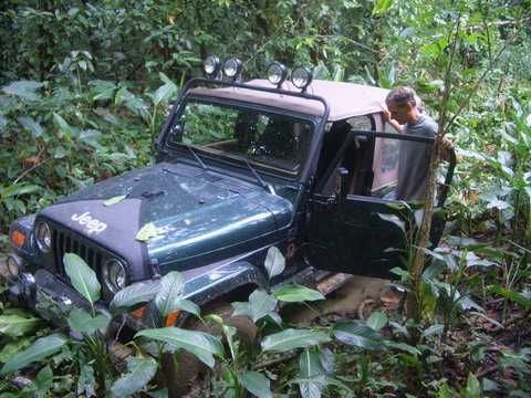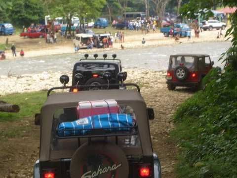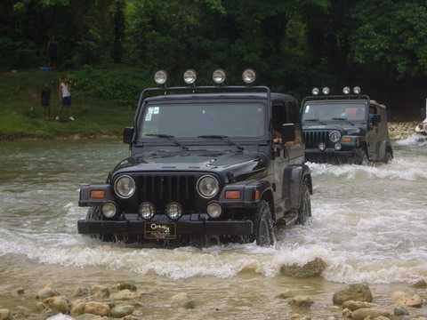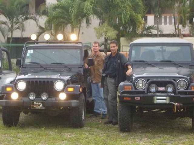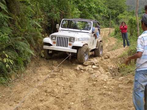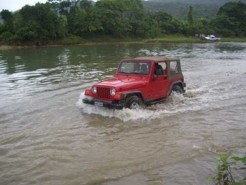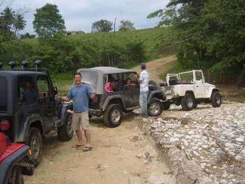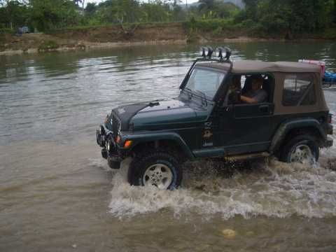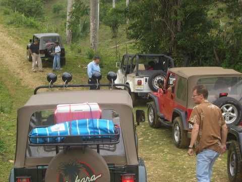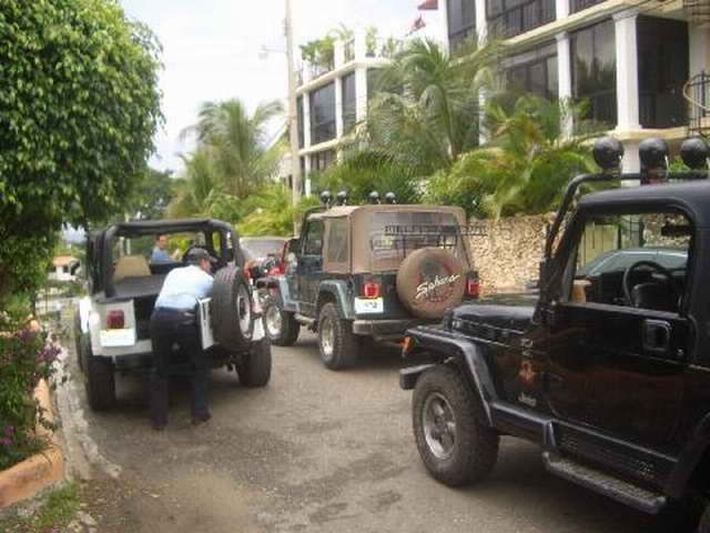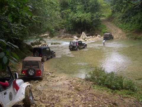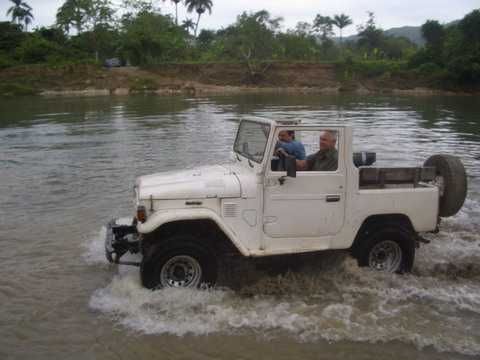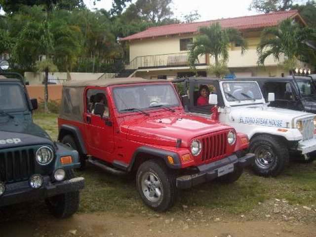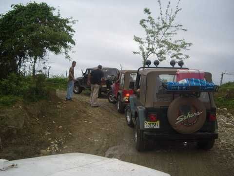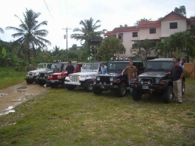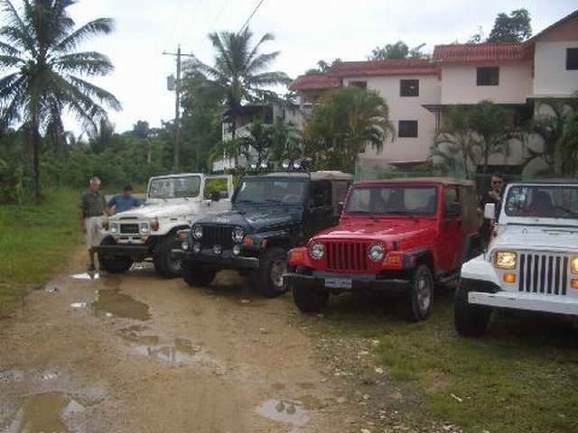 Am Sonntag morgen ging es gegen 10:30 Uhr vom Caribe Campo ab, bis auf unsere # 2 Thomas Klusmann konnten alle Gruendungsmitglieder plus Mitglied Gerhard mitfahren. Da es in der Nacht geregnet hatte, waren einige Piraten eher vorsichtig gestimmt bezueglich der zu fahrenden Route, aber Renato, Jens and Martin konnten sich mit Ihrem Vorschlag, ueber Madre Vieja an den Wasserfall und weiter nach Gaspar Hernandez zu fahren, durchsetzen; “wer nichts wagt, der nicht gewinnt”. Bei der 1. Flussueberquerung des Rio Yasica kam die neue Winch von Renato zum ersten Mal zum Einsatz, musste er doch einen Dominikaner mit dessen PickUp aus dem Fluss ziehen. Bei Jamao kam es dann zur zweiten Flussdurchquerung, sehr zum Vergnuegen von hunderten Dominikaneren, die ihr Bier am und im Wasser genossen. Nach kurzer Fahrt auf der Teerstrasse Richtung Moca bogen wir dann links ab Richtung Wasserfall. Auf dem Weg zum Wasserfall gab es einige mittelschwere Abstiege, die aber auch von den nicht hoeher gelegten Wage ganz gut bewaeltigt wurden. Fuer Marco war es die erste Fahrt im eigenen Wagen, hatte er den Wrangler doch erst zwei Tage vorher gekauft. Nach mehren Flussdurchfahren erreichten wir dann den Wasserfall, aufgrund der fehlenden Sonne wollte dann aber keiner den Sprung ins kuehleWasser wagen. Einer Arztfamilie aus Santiago, die es mit einem Nissan PickUp und Landcruiser 100 bis hier hin geschafft hatten, riet Renato zum Glueck von einer Weiterfahrt ab, da der schwierigste Teil noch bevorstand, wie sich bald zeigen sollte. Das erste grosse Hinderniss, zumindenst fuer die hohen Wrangler von Renato, Jens und Martin, stellte ein nicht komplett umgestuerzter Baum direkt ueber dem Weg dar. Waehrend Renato, Klaus und Martin den Weg mit Hilfe der Winch und Muskelkraft zu rauemen begannen, versuchte der ungeduldige Jens in seinem jugendlichen Leichtsinn, das Hinderniss zu umfahren, mit dem vorhersehbaren Resultat des totalen Festfahrens und Einsinkens bis zum Bauch ( des Wranglers ). In der Zwischenzeit hatten es Renato und Martin geschaft, unter dem Baum duchzufahren. Renato machte sich dann gleich ans Bergen von Jens, die ganze Sache hatte einen hohen Unterhaltungswert. Nach gluecklicher Rettung des gestrandenten Wrangler konnte es dann weitergehen. Bei der naechsten Flussdurchfahrt wurde dann unser Photograph Heinz am andern Ufer vergessen, aber er konnte kurzfristig auf einen 4-beinigen Offroader umsteigen und kam dann doch noch trockenen Fusses ans rettende Ufer. Die letzte groessere Herausforderung stellte dann die einigen schon bekannte Abbruchkannte des Weges vor der letzten groesseren Flussdurchfahrt dar. Renato donnerte mit hoher Geschwindigkeit auf die Engstelle zu, der Wagen kippte mit dem linken Vorderrad ins Nichts und Jens und Martin sahen den Wrangler schon den Abhang runterstuerzen. Zum Glueck wurde das Rad durch die hohe Geschwindigkeit beim Aufsetzen der Achse auf einen Stein wieder hoch auf festen Grund geschleudert und Alles war fuer Renato ueberstanden. Die weiteren Wagen fuhren die Stelle dann ganz langsam und mit geradegestellten Raedern an und kamen, wenn auch mit Herzklopfen, gut rueber. Bei Klaus wurde vorsichtshalber nochmals die Winch eingesetzt. Nach einer weiteren Flussdurchquerung machten wir, zum dritten Mal, Rast auf der zerstoerten Bruecke dieses Flusses, im trockenen Teil des Flussbettes, und alle fielen ueber den Essenskorb von Heinz her, von Klaus wurde kuehles Bitburger spendiert. Hiernach ging es dann zuegig nach Gaspar Hernandez weiter, Gerhard, der diesmal vorne fuhr und vorher ueberall mit seinem Diesel stoisch durchtuckern konnte, musste nun Alles geben, um die schnellen Wrangler nicht zu sehr aufzuhalten. In Gaspar Hernandez ging es auf der Teerstrasse nach Sosua zurueck, um den Tag bei Klaus im El Toro mit einem wohl verdienten Essen ausklingen zu lassen. Ich denke, dass wir eine super Tour hatten, einen besseren Anfang unserer zukuenftigen Touren haette man sich wohl kaum wuenschen koennen. Noch einige Bemerkungen zur Ausruestung: Alle sollten beim naechsten Mal folgende Dinge haben: Abschleppseil und/oder Bergegurt. Handschuhe Verbandkasten Am Wagen vorne und hinten eine Moeglichkeit, einen Haken oder die Schlaufe eines Bergegurtes zu befestigen. Eine Winch ist ein auesserst nuetzliches Zubehoer und es waere wuenscheswert, wenn noch weitere Offroad-Piraten dem Beispiel von Renato folgen wuerden. Wer einen Platz kennt, wo man Klappspaten kaufen kann, bitte melden, wir sollten immer mindestens 2 dabeihaben. Weiterhin hat sich gezeigt, dass schon eine geringe Hoeherlegung von 2 inch das Aufsetzen verhindern kann. Im letzen Jahr bin ich auf dieser Strecke ohne Lift Kit oft aufgesetzt, diesmal nur 2x leicht mit der Anhaengerkupplung. Die Tour hatte einige mittelschwere Stellen, die bei Regen unter Umstaenden nur mit Schwierigkeiten zu meistern gewesen waeren. Martin
