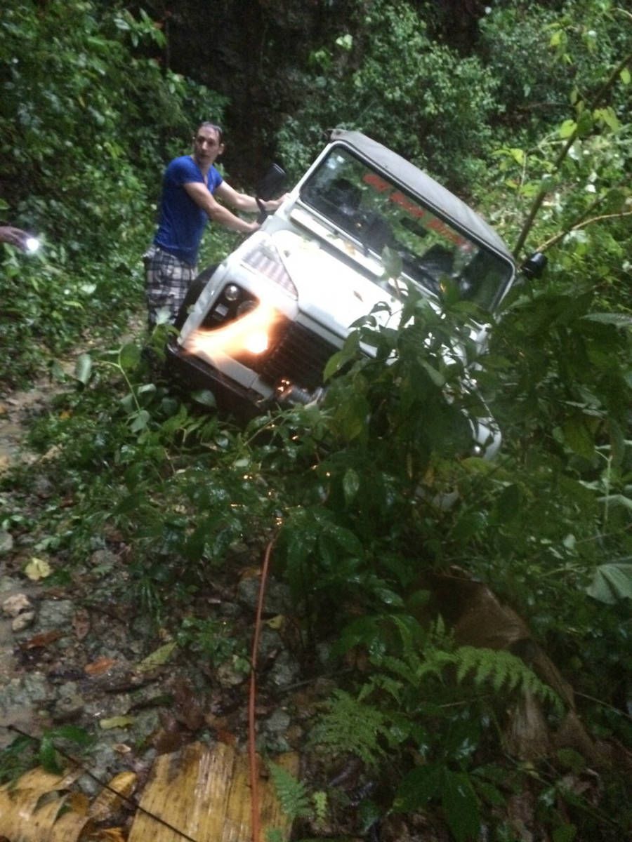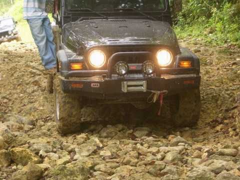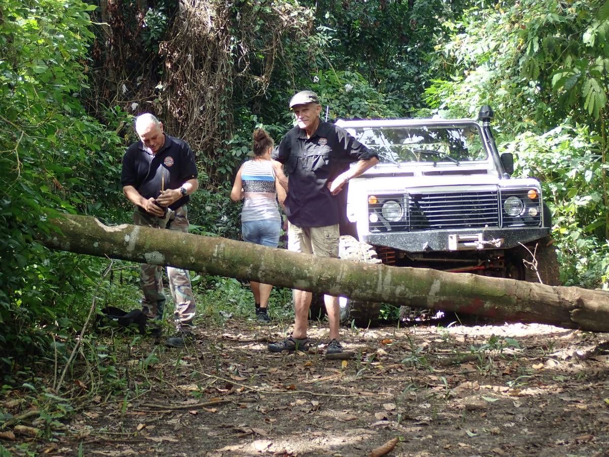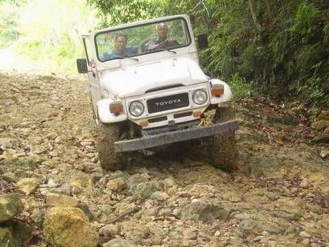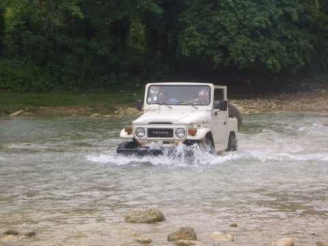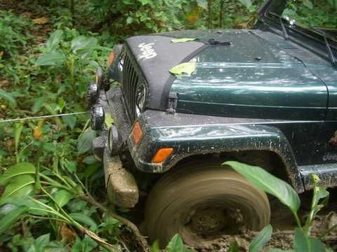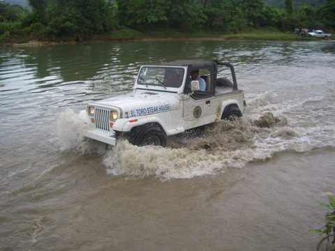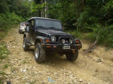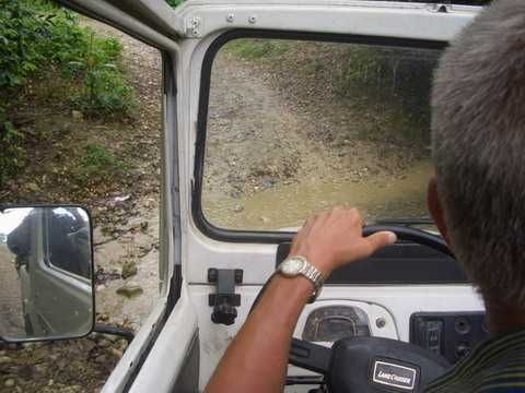 Am Sonntag morgen ging es gegen 10:30 Uhr vom Caribe Campo ab, bis auf unsere # 2 Thomas Klusmann konnten alle Gruendungsmitglieder plus Mitglied Gerhard mitfahren. Da es in der Nacht geregnet hatte, waren einige Piraten eher vorsichtig gestimmt bezueglich der zu fahrenden Route, aber Renato, Jens and Martin konnten sich mit Ihrem Vorschlag, ueber Madre Vieja an den Wasserfall und weiter nach Gaspar Hernandez zu fahren, durchsetzen; “wer nichts wagt, der nicht gewinnt”. Bei der 1. Flussueberquerung des Rio Yasica kam die neue Winch von Renato zum ersten Mal zum Einsatz, musste er doch einen Dominikaner mit dessen PickUp aus dem Fluss ziehen. Bei Jamao kam es dann zur zweiten Flussdurchquerung, sehr zum Vergnuegen von hunderten Dominikaneren, die ihr Bier am und im Wasser genossen. Nach kurzer Fahrt auf der Teerstrasse Richtung Moca bogen wir dann links ab Richtung Wasserfall. Auf dem Weg zum Wasserfall gab es einige mittelschwere Abstiege, die aber auch von den nicht hoeher gelegten Wage ganz gut bewaeltigt wurden. Fuer Marco war es die erste Fahrt im eigenen Wagen, hatte er den Wrangler doch erst zwei Tage vorher gekauft. Nach mehren Flussdurchfahren erreichten wir dann den Wasserfall, aufgrund der fehlenden Sonne wollte dann aber keiner den Sprung ins kuehleWasser wagen. Einer Arztfamilie aus Santiago, die es mit einem Nissan PickUp und Landcruiser 100 bis hier hin geschafft hatten, riet Renato zum Glueck von einer Weiterfahrt ab, da der schwierigste Teil noch bevorstand, wie sich bald zeigen sollte. Das erste grosse Hinderniss, zumindenst fuer die hohen Wrangler von Renato, Jens und Martin, stellte ein nicht komplett umgestuerzter Baum direkt ueber dem Weg dar. Waehrend Renato, Klaus und Martin den Weg mit Hilfe der Winch und Muskelkraft zu rauemen begannen, versuchte der ungeduldige Jens in seinem jugendlichen Leichtsinn, das Hinderniss zu umfahren, mit dem vorhersehbaren Resultat des totalen Festfahrens und Einsinkens bis zum Bauch ( des Wranglers ). In der Zwischenzeit hatten es Renato und Martin geschaft, unter dem Baum duchzufahren. Renato machte sich dann gleich ans Bergen von Jens, die ganze Sache hatte einen hohen Unterhaltungswert. Nach gluecklicher Rettung des gestrandenten Wrangler konnte es dann weitergehen. Bei der naechsten Flussdurchfahrt wurde dann unser Photograph Heinz am andern Ufer vergessen, aber er konnte kurzfristig auf einen 4-beinigen Offroader umsteigen und kam dann doch noch trockenen Fusses ans rettende Ufer. Die letzte groessere Herausforderung stellte dann die einigen schon bekannte Abbruchkannte des Weges vor der letzten groesseren Flussdurchfahrt dar. Renato donnerte mit hoher Geschwindigkeit auf die Engstelle zu, der Wagen kippte mit dem linken Vorderrad ins Nichts und Jens und Martin sahen den Wrangler schon den Abhang runterstuerzen. Zum Glueck wurde das Rad durch die hohe Geschwindigkeit beim Aufsetzen der Achse auf einen Stein wieder hoch auf festen Grund geschleudert und Alles war fuer Renato ueberstanden. Die weiteren Wagen fuhren die Stelle dann ganz langsam und mit geradegestellten Raedern an und kamen, wenn auch mit Herzklopfen, gut rueber. Bei Klaus wurde vorsichtshalber nochmals die Winch eingesetzt. Nach einer weiteren Flussdurchquerung machten wir, zum dritten Mal, Rast auf der zerstoerten Bruecke dieses Flusses, im trockenen Teil des Flussbettes, und alle fielen ueber den Essenskorb von Heinz her, von Klaus wurde kuehles Bitburger spendiert. Hiernach ging es dann zuegig nach Gaspar Hernandez weiter, Gerhard, der diesmal vorne fuhr und vorher ueberall mit seinem Diesel stoisch durchtuckern konnte, musste nun Alles geben, um die schnellen Wrangler nicht zu sehr aufzuhalten. In Gaspar Hernandez ging es auf der Teerstrasse nach Sosua zurueck, um den Tag bei Klaus im El Toro mit einem wohl verdienten Essen ausklingen zu lassen. Ich denke, dass wir eine super Tour hatten, einen besseren Anfang unserer zukuenftigen Touren haette man sich wohl kaum wuenschen koennen. Noch einige Bemerkungen zur Ausruestung: Alle sollten beim naechsten Mal folgende Dinge haben: Abschleppseil und/oder Bergegurt. Handschuhe Verbandkasten Am Wagen vorne und hinten eine Moeglichkeit, einen Haken oder die Schlaufe eines Bergegurtes zu befestigen. Eine Winch ist ein auesserst nuetzliches Zubehoer und es waere wuenscheswert, wenn noch weitere Offroad-Piraten dem Beispiel von Renato folgen wuerden. Wer einen Platz kennt, wo man Klappspaten kaufen kann, bitte melden, wir sollten immer mindestens 2 dabeihaben. Weiterhin hat sich gezeigt, dass schon eine geringe Hoeherlegung von 2 inch das Aufsetzen verhindern kann. Im letzen Jahr bin ich auf dieser Strecke ohne Lift Kit oft aufgesetzt, diesmal nur 2x leicht mit der Anhaengerkupplung. Die Tour hatte einige mittelschwere Stellen, die bei Regen unter Umstaenden nur mit Schwierigkeiten zu meistern gewesen waeren. Martin